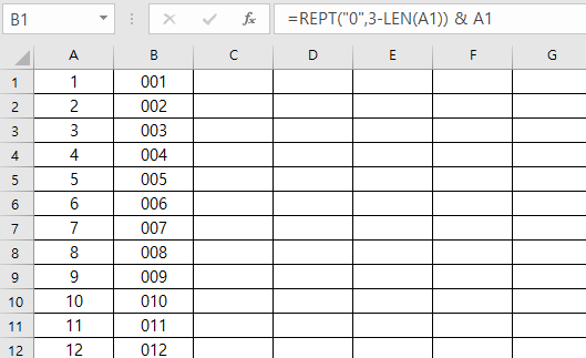 =IF(LEN(A1)=1,"00"&A1,IF(LEN(A1)=2,"0"&A1,A1))