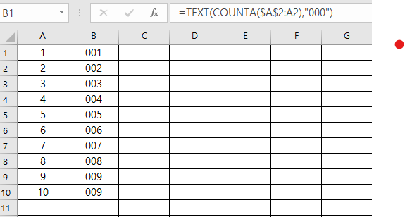 - 예: A열에 데이터가 한 줄씩 늘어날 때마다 B열에 001, 002... 식으로 표시